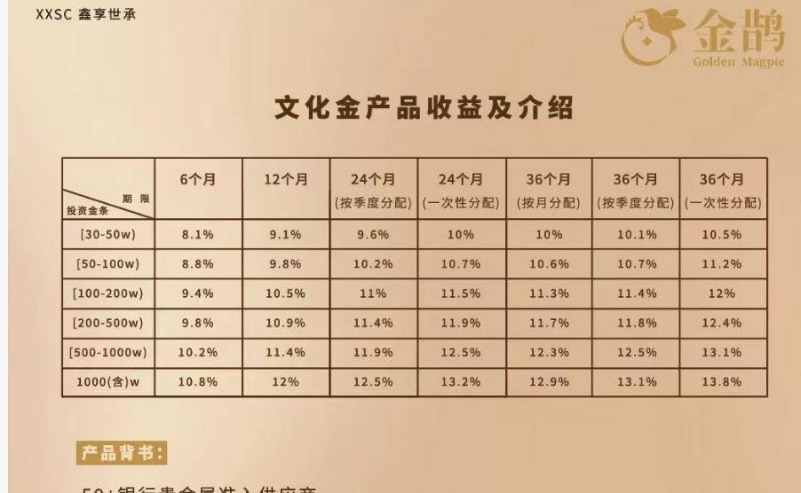 (“鑫享世承”文化金产品收益介绍。受访者提供。)